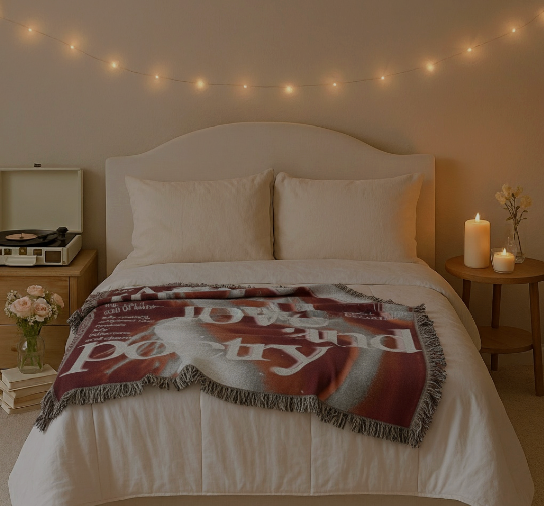 Each Swiftie blanket starts with over 8,000 individual threads, carefully aligned and woven on a high-tension Jacquard loom.